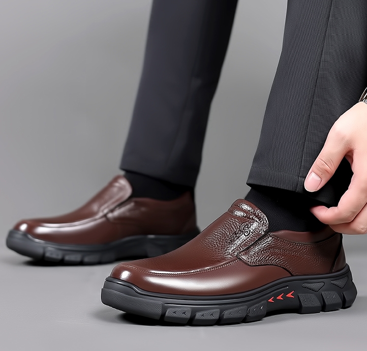 Mens Genuine Leather Casual Comfy Arch Support Slip-On Loafers