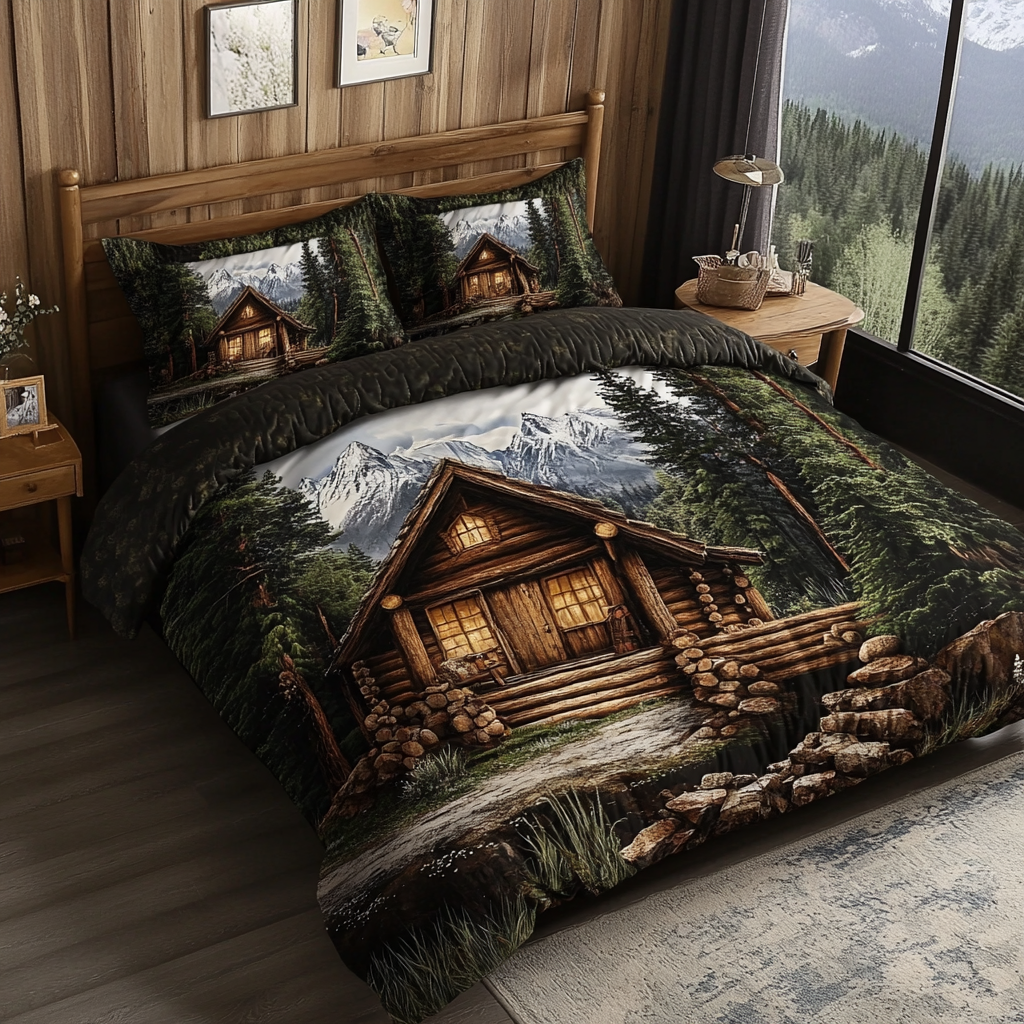Mountain Log Cabin 3-Piece Quilted Bedding Set NCU0DK3674