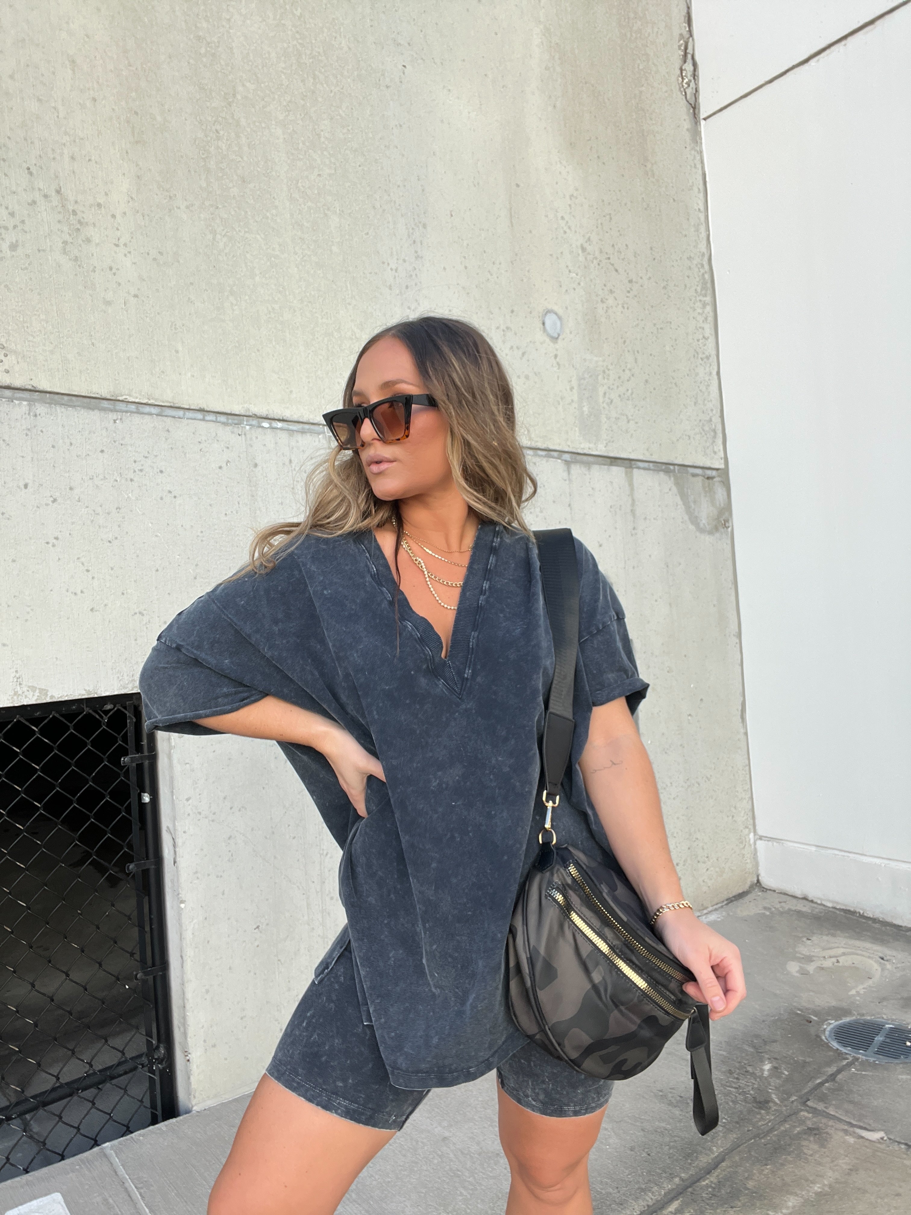 Cold Shoulder Cutout Zip Front Waffle Knit Top
