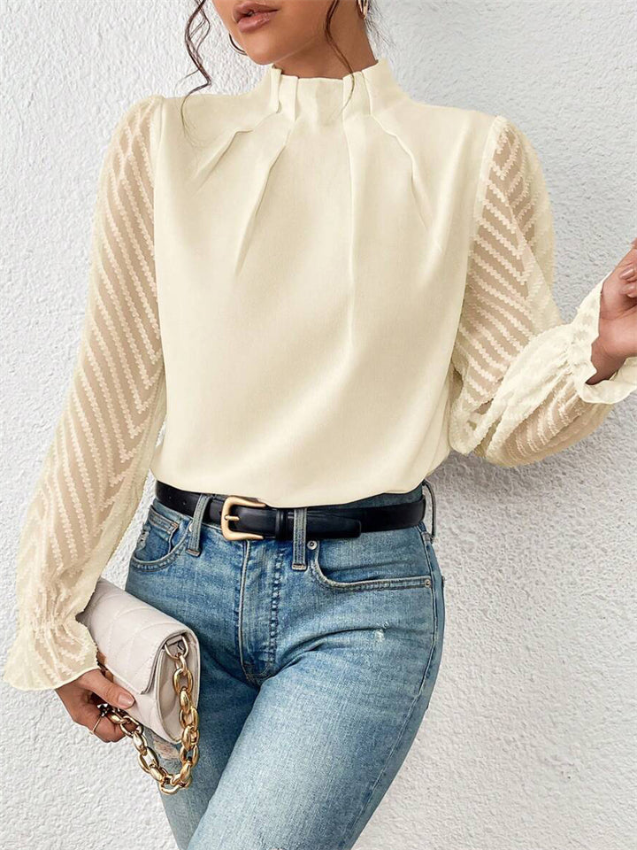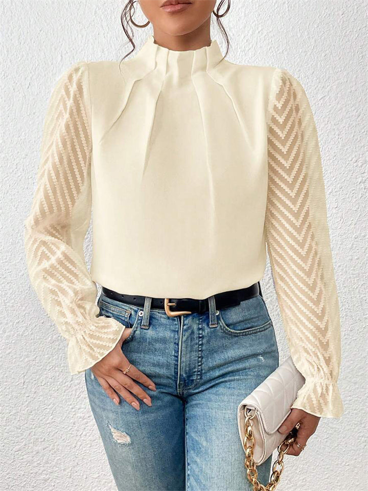 Autumn Crew Neck Long Sleeve Casual Shirt for Lady