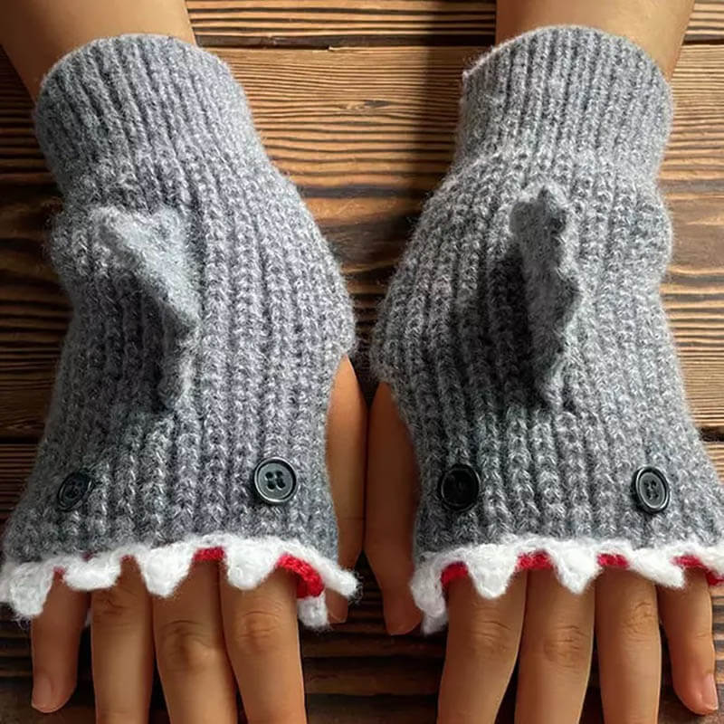 Shark Knitted Button Fingerless Gloves