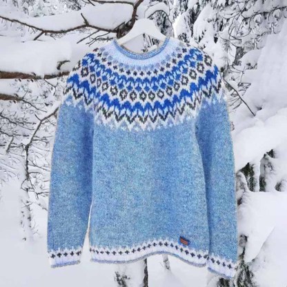 Vintage Icelandic Knit Jacquard Islender Crew Neck Sweater(Unisex)