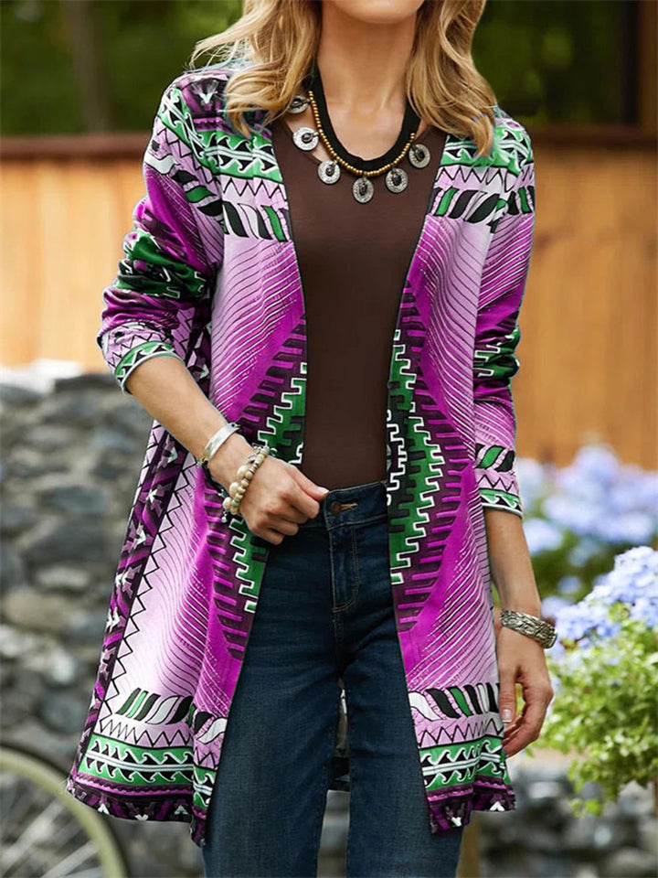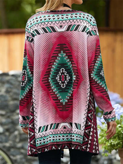 Ethnic Geometric Print Long Sleeve Cardigan Shirt for Women