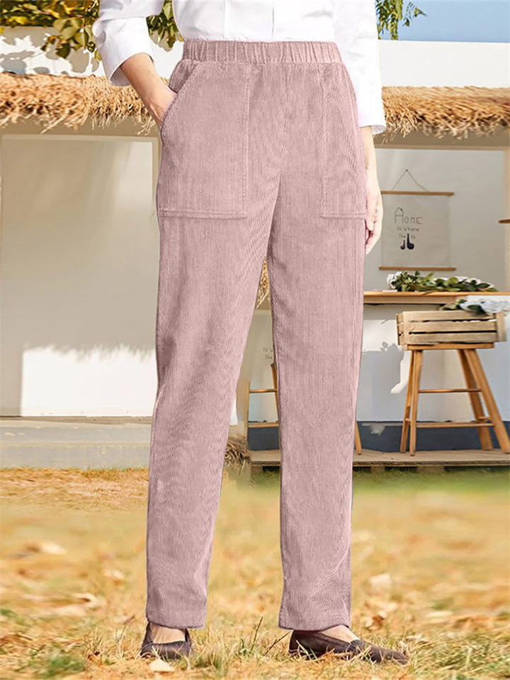Female Autumn Winter Straight Leg Pure Color Corduroy Trousers