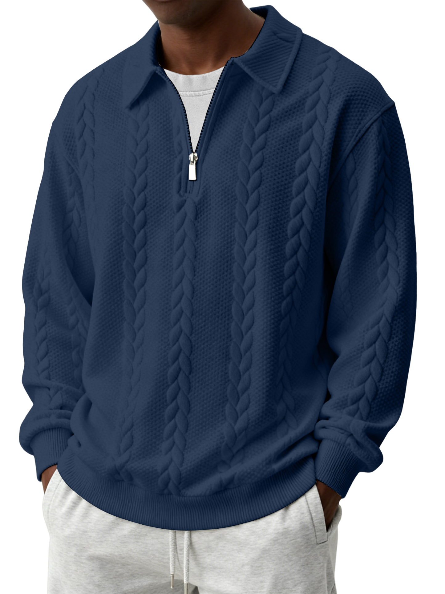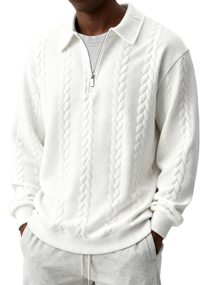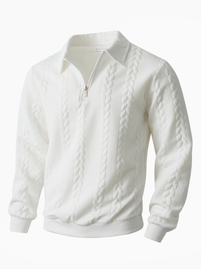 Men's Casual Comfortable Jacquard Turn-Down Collar Quarter Zips Long Sleeve Sweatshirt