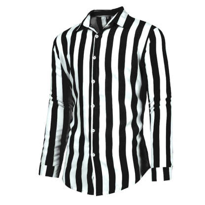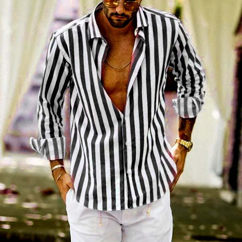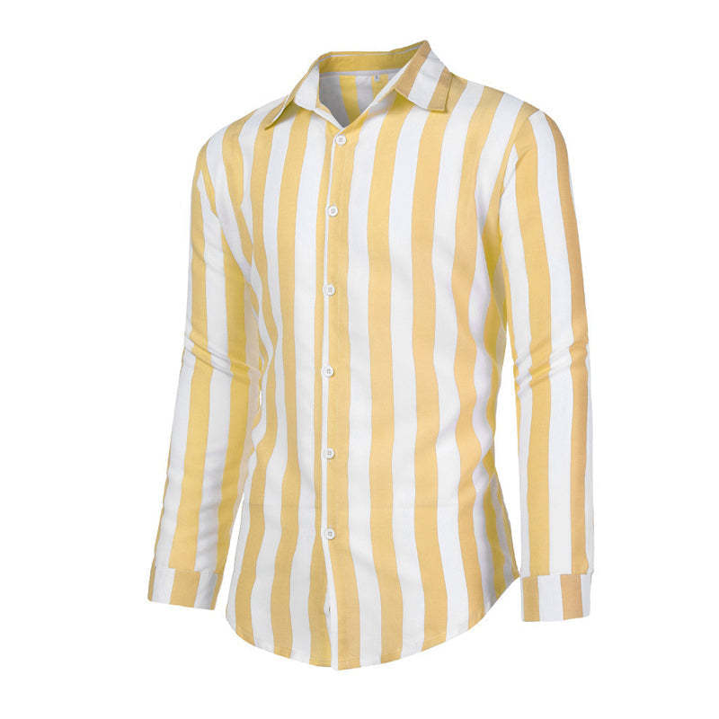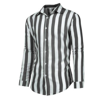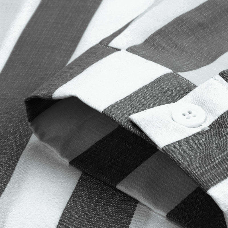 Men's Cotton Linen Striped Button Down Long Sleeve