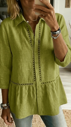 New Arrivals🔥 Women's Casual Patchwork Openwork Webbing Linen Shirt