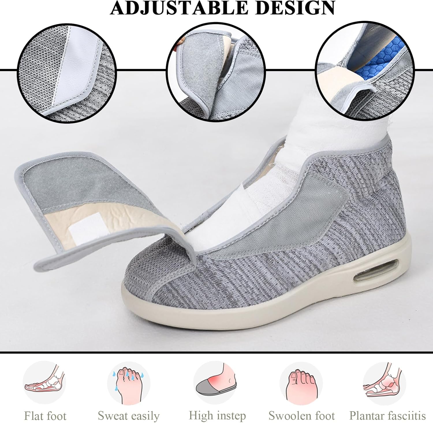 Wide toe box and extra depth design: offer a relaxed fit and extra room for bunions and toes.
